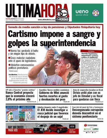 Ayer la policía de Paraguay dispersó a los manifestantes, muchos de ellos jubilados, tras la aprobación de una ley que autoriza a “invertir” los fondos de las cajas de pensiones públicas y privadas existentes en el país.
