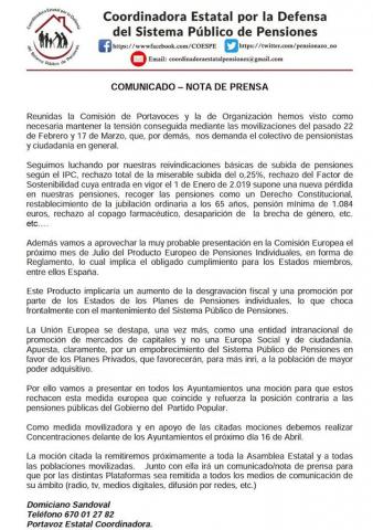 SALUDAMOS ESTA NUEVA ACCIÓN (17 DE MARZO) DE LOS PyJ DEL ESTADO ESPAÑOL