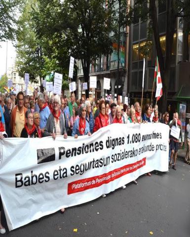 Miles de pensionistas de Euskal Herria llenaron ayer las calles en ciudades y pueblos para mostrar nuevamente su enfado y reclamar pensiones «dignas» que alcancen el mínimo de 1.080 euros mensuales, entre otras demandas. La manifestación de Bilbao fue la mas numerosa con 25.000 personas en las calles, aunque en Gasteiz e Iruña también fueron miles las personas que salieron a la calle.