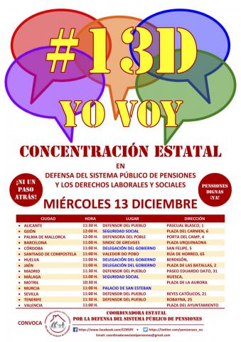 Σήμερα, 13 Νοεμβρίου 2.021, σε περισσότερες από 40 πόλεις του ισπανικού κρατιδίου, έχουν πραγματοποιηθεί ενιαίες διαδηλώσεις του Perer ενάντια στη σοσιαλδημοκρατική κυβέρνηση (PSOE + PODEMOS) που δεν τηρεί τις εκλογικές υποσχέσεις και συμμορφώνεται με όσα διατάσσει το ΔΝΤ μέσω της Ευρωπαϊκή Ένωση.