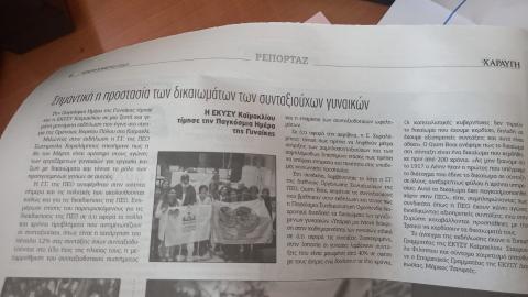 Η ΕΚΥΣΥ Καϊμακλίου τίμησε την Παγκόσμια Ημέρα της Γυναίκας διοργανώνοντας εκδήλωση την Δευτέρα, 6 Μαρτίου στο Οίκημα της Ομόνοιας Βορείου Πόλου στο Καϊμακλί. Η εκδήλωση που πραγματοποιήθηκε στα πλαίσια των εκδηλώσεων προς τιμήν της 8ης του Μάρτη σε συνεργασία με την ΕΚΥΣΥ και το Γραφείο Γυναικών Εργατοϋπαλλήλων της ΠΕΟ, είχε μεγάλη επιτυχία αφού το Οίκημα γέμισε ασφυκτικά με συνταξιούχες και συνταξιούχους.