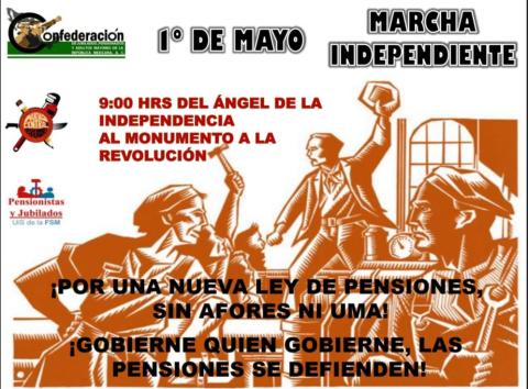 1 de mayo en México CENTRADO EN EL TEMA PENSIONES LA LUCHA YA ES MUNDIAL.