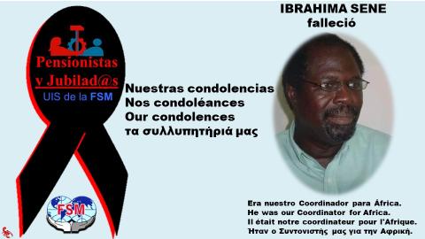 LETTRE DE CONDOLÉANCES A TOUS LES SYNDICALISTES DE l’UIS DES PENSIONNES ET RETRAITES DE LA FSM ET A LA FAMILLE DU DEFUNT