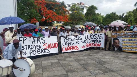 La Unión De Trabajadores Cañeros Se Movilizo En La Parte Frontal De La Dirección General De Jubilaciones Y Pensiones Ministerio De Hacienda, A Exigir La Pensión Para El Beneficio De Mas De 5 Mil Trabajadores Cañeros Que Trabajaron Por Mas De 50 Años En Los Centrales Azucareros Y Que Cotizaron Para La Seguridad Social Pero Fueron Tirados A La Calle Sin Su Pensiones Y Seguro Medico.