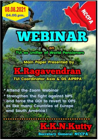 Dear Comrade Quim Boix - Greetings - The gist of the document presented by me in the webinar is attached herewith. There may be some mistakes but for India i think it gives an opening view about our activities. Any mistakes please point out to me for correction - KR